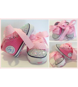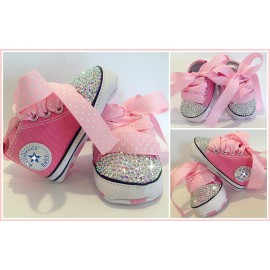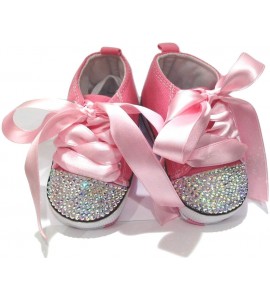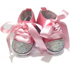 SNEAKERS BABY SHOES ROSA STRASS Aurora Boreale 0-3 MESI Scarpine Neonato Battesimo Crystal Bebè Infant Luxury Newborn Christenin