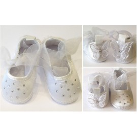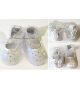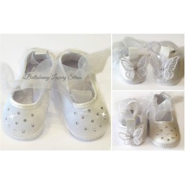 BALLERINA NEONATA 0-3 MESI BIANCA + CRISTALLI STRASS e FARFALLE ORGANZA Battesimo Wedding Festa Party Matrimonio Scarpa Scarpina