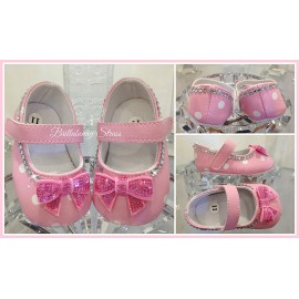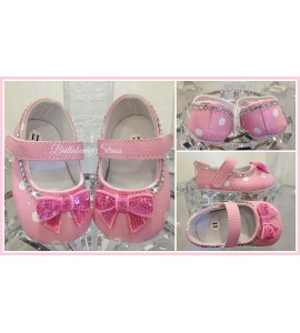 SCARPE NEONATA STRASS POIS ROSA 3-6 MESI BALLERINE SCARPINE BABY SHOES BLING PERSONALIZZATE CON FIOCCHI