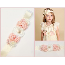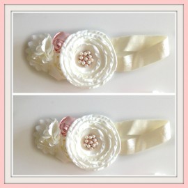 - SET BABY Fascia Elastica + Cintura con Strass, Rose di raso in seta e Perle centrali