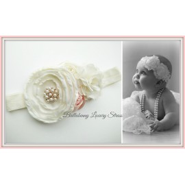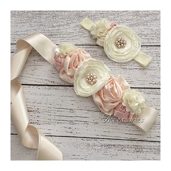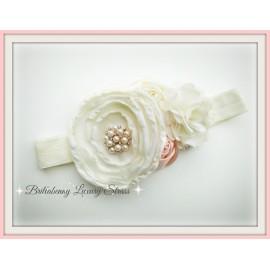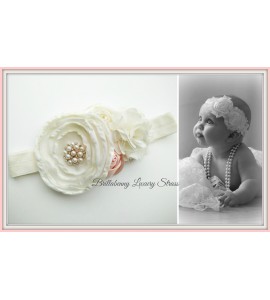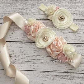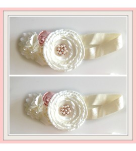 SET BABY FASCIA ELASTICA LUXURY x CAPELLI RASO/SETA CON FIORI E STRASS + CINTURA A COMPLETO x Battesimo Matrimonio Feste Bebè