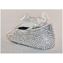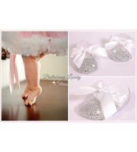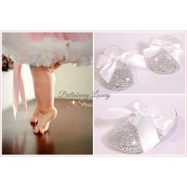 SCARPE BALLERINE LUXURY BABY NEONATA 0-6 MESI RIVESTITE DI CRISTALLI (Scarpine Crystal Battesimo Festa Evento Party Matrimonio W