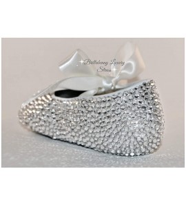 Scarpe ballerine in raso da neonata 0-6 mesi bianca con cristalli strass e fiocco pailettes