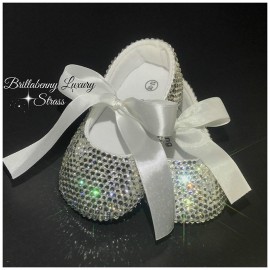 Le Baby Shoes Brillabenny Cristallizzate sono scarpine per neonati e bebè decorate finemente a mano dal nostro laboratorio con più di 3000 cristalli trasparenti di varie misure. E' considerato un Prodotto Luxury Handmade (di Lusso) perchè "uniche" nel loro genere, e molto luminose e scintillanti. Non è possibile ordinarle in altre taglie previa comunicazione. Sono disponibili poche paia Taglia 1 ovvero 0-6 Mesi, Lunghezza Suola esterna 10,5cm (Lunghezza Suola Interna circa mezzo centimetro in meno). Si consiglia di misurare sempre la lunghezza del piedino prima dell'acquisto) Sono meravigliose sia come regalo di nascita, sia da sfoggiare in battesimi e feste (ma sempre con la supervisione di un adulto). Essendo completamente cristallizzate risultano leggermente rigide per evitare che i cristalli si stacchino. Non sono per camminare, nè per primi passi, ma solo da culla. L'articolo può essere restituito entro 10 giorni dalla data di acquisto, ma la restituzione è a carico del cliente, sia in andata, sia in ritorno, sia in eventuali cambi. Vi prego di prendere visione di questa regola nel nostro shop prima di acquistare, visto che non abbiamo logistica Amazon che gestisce i resi. Grazie, vi auguriamo Buon Shopping :)