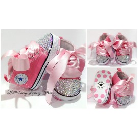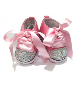 Scarpe Sneakers in tela da neonata 3-6 mesi rosa con cristalli strass e fiocco pailettes