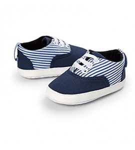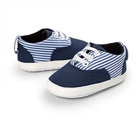 SCARPINA NEONATO YACHT 0-6 MESI Bianco & Blu Navy Righe con Lacci Prima Infanzia Baby Maschietto Little Boy Male Yachting Club B