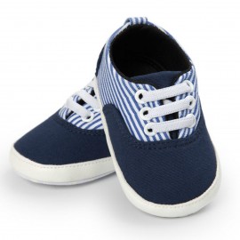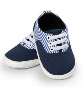 Scarpe scarpine in tela da neonato 3-6 mesi bianche e blu navy con laccetti