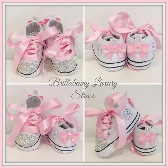 BrillaBenny Scarpine Scarpe Strass Bimba Neonato 0-3 Mesi Bianche/Baby Shoes White Birthday Party Events Wedding Gift Rhinestone