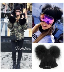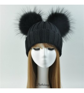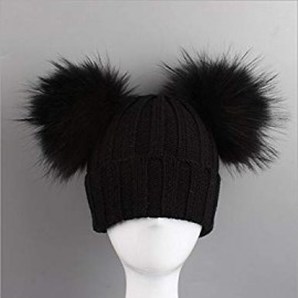 1 CAPPELLO CUFFIA Doppio Pon Pon in Vera Pelliccia Murmasky +